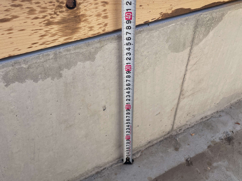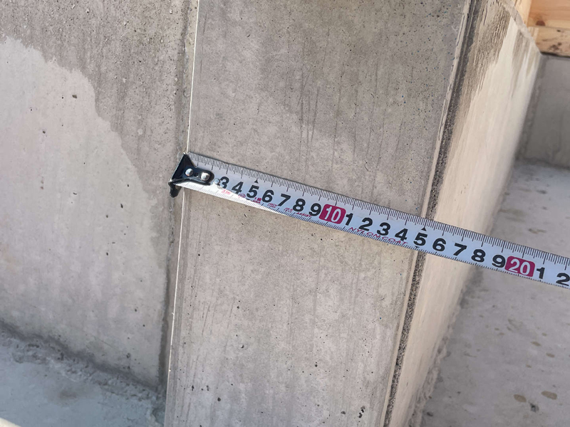 続いて立ち上がり筋の確認をします。ここでは外周部鉄筋かぶり厚さを確認しました。