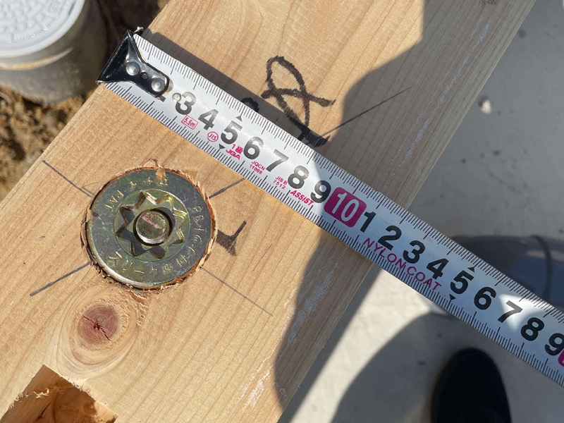 アンカーボルトの位置と土台側面との距離を確認しました。