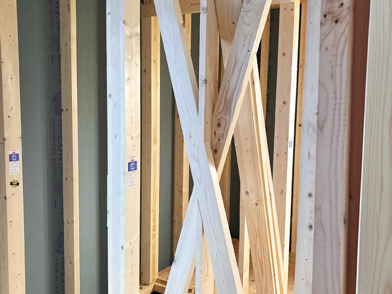 筋交い耐力壁の位置は構造図通りか確認しました。