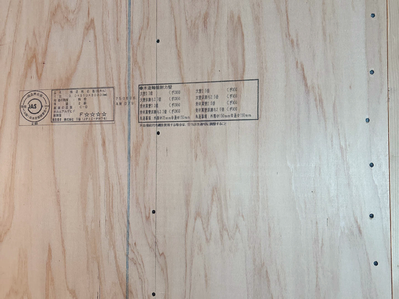 面材耐力壁の種類と位置は構造図通りであるが確認しました。