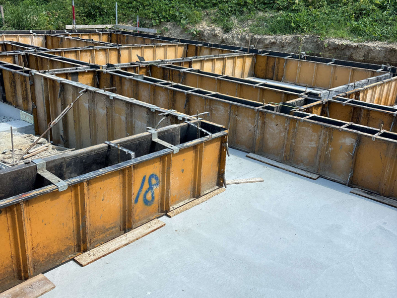 立ち上がり型枠を施工しました。設計図書通りであるかも確認します。