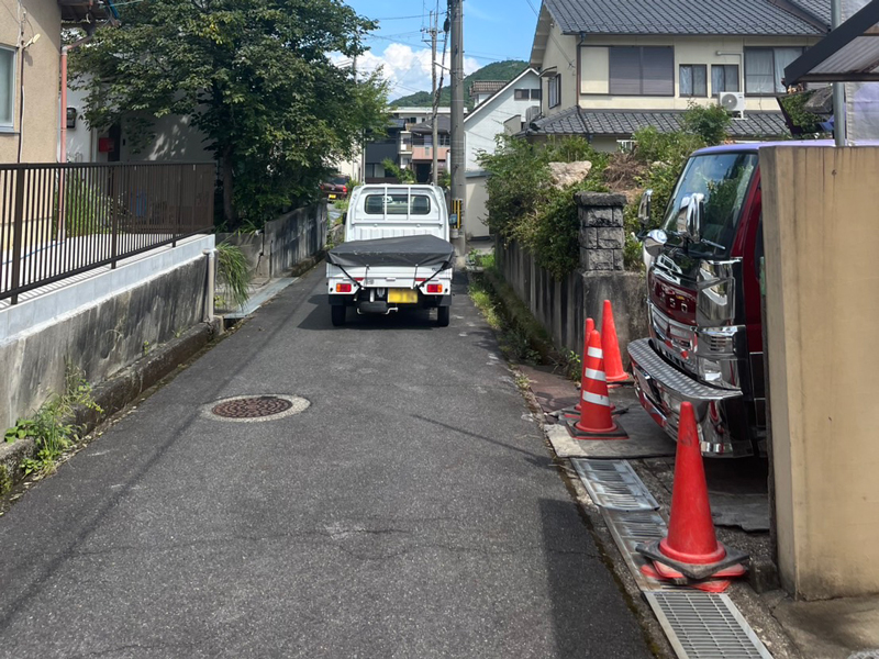 敷地調査では側溝の位置や前道の広さの確認などを行います。