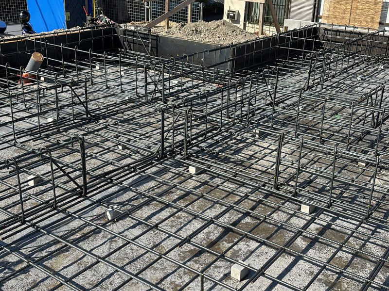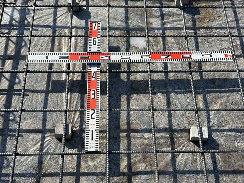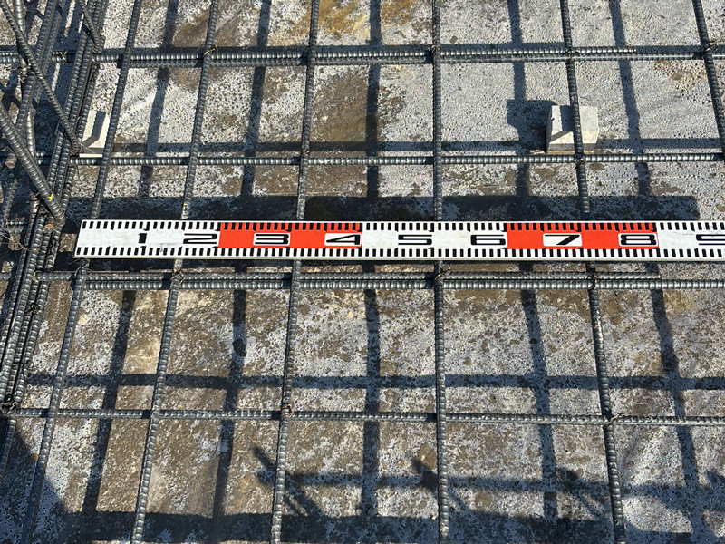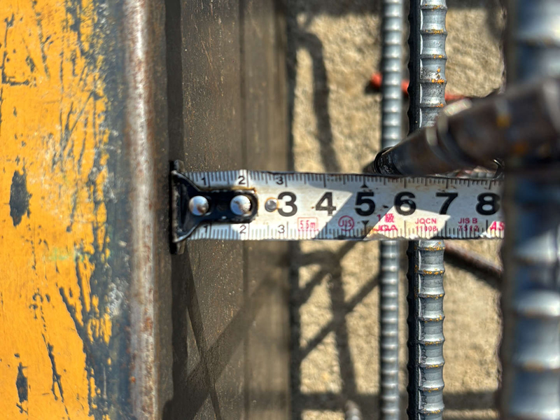 続いて立ち上がり筋の確認をします。ここでは外周部鉄筋かぶり厚さを確認しました。