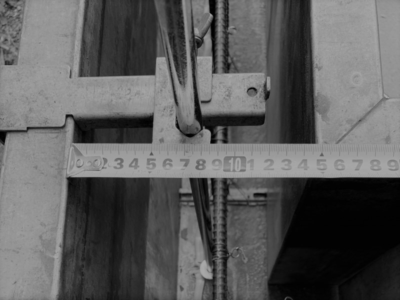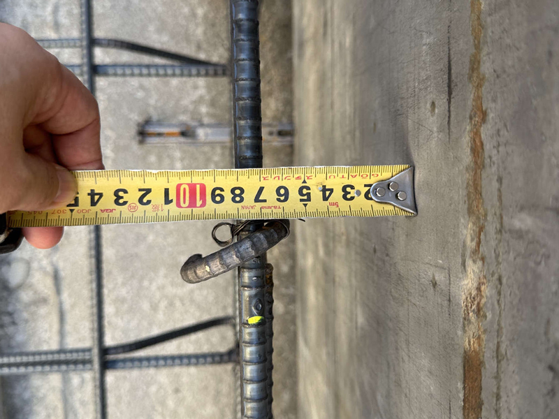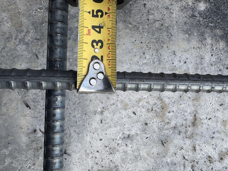 続いて立ち上がり筋の確認をします。ここでは外周部鉄筋かぶり厚さを確認しました。