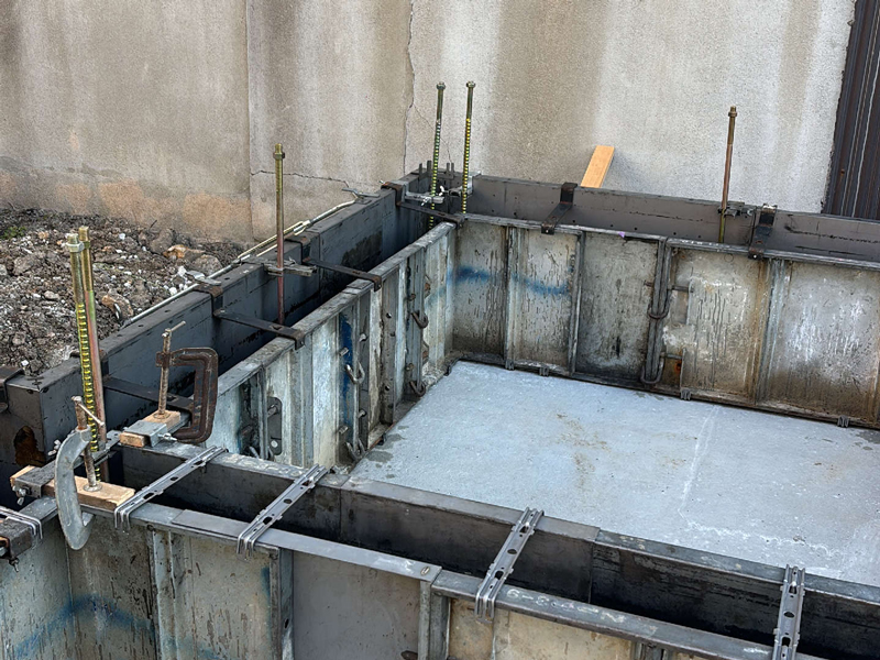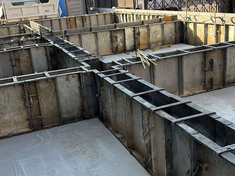 立ち上がり型枠を施工しました。設計図書通りであるかも確認します。
